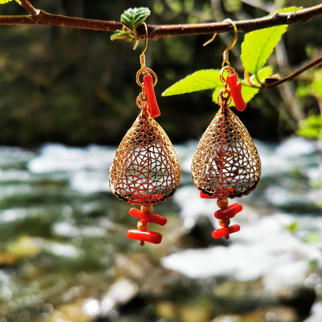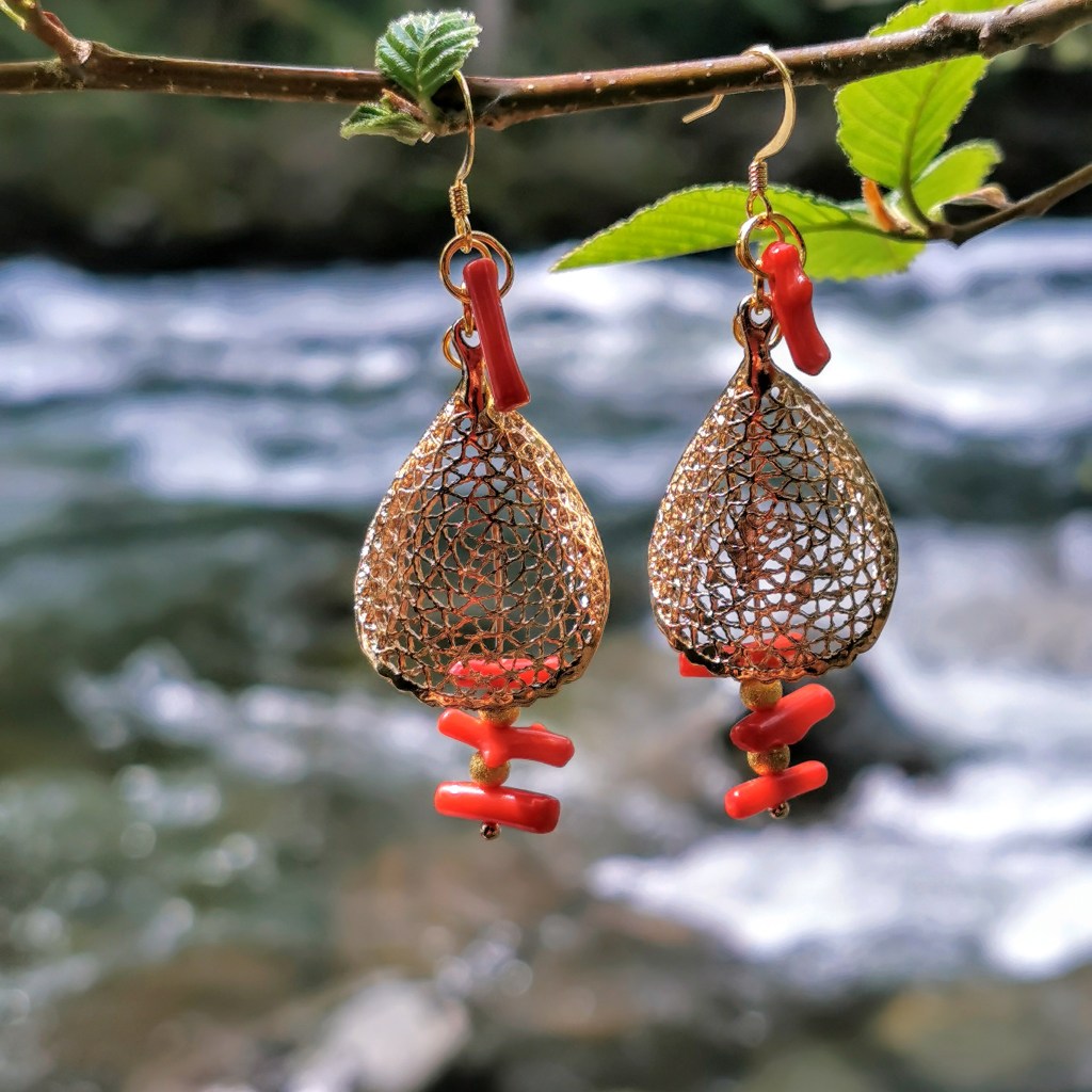 Webs have the power to catch our dreams and happiness and hold them frozen in time. The nuggets of red coral transcend space and bring connotations of a warm tropical breeze filled with peace and happiness.